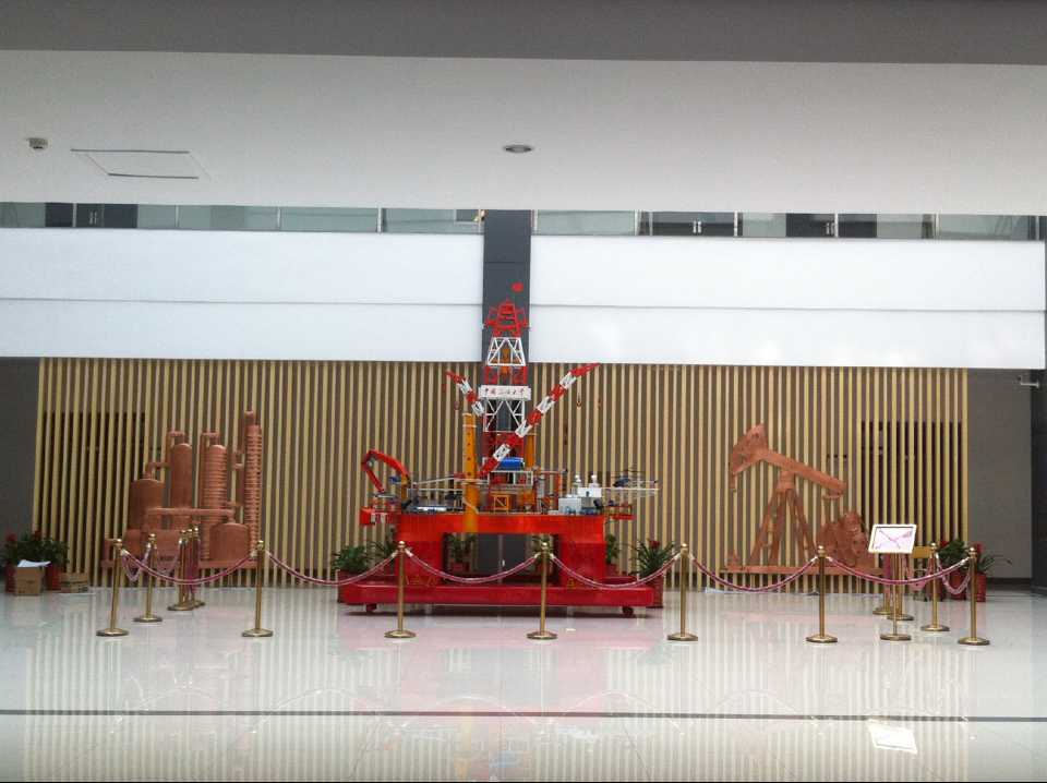 抽油機及化工廠鍛銅浮雕,2015年10月23日安裝于中國石油大學華東分校(青島市黃島區(qū))。材質:紫銅板。工藝:手工鍛銅。高:2.19米。