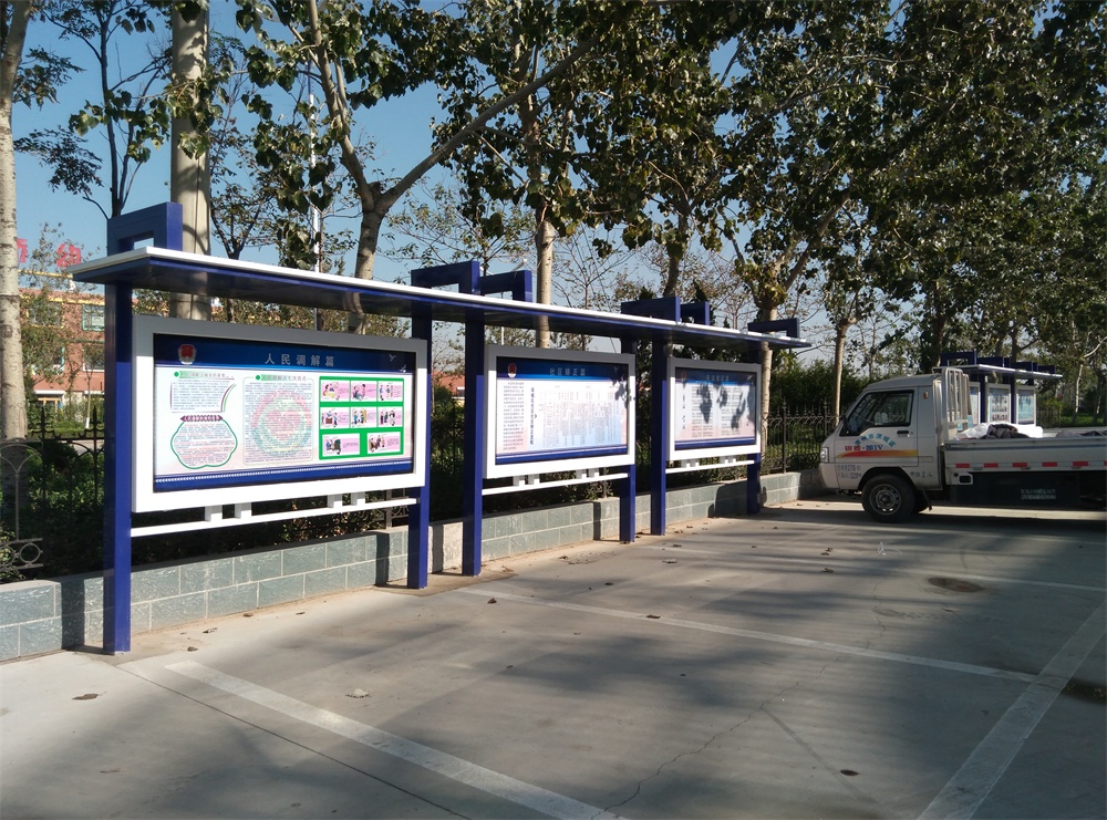兩欄的宣傳欄高度為3米,長6米,箱體2600mm*1400mm;三欄的宣傳欄,高2.7米,長9米,箱體尺寸為1200mm*2400m。