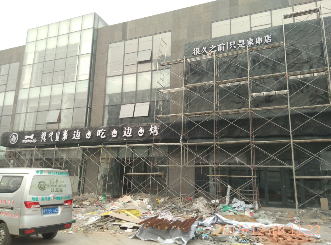 本項(xiàng)目從2015年10月28日開始施工,截止2015年12月6日順利竣工。地址位于濱州市黃河六路渤海十八路西200米路北。室內(nèi)假山裝飾部分,分為巖石假山、仿鐘乳石假山、仿溶洞效果三種風(fēng)格。現(xiàn)為濱州市唯一一家大型原生態(tài)風(fēng)格自助室內(nèi)燒烤城。