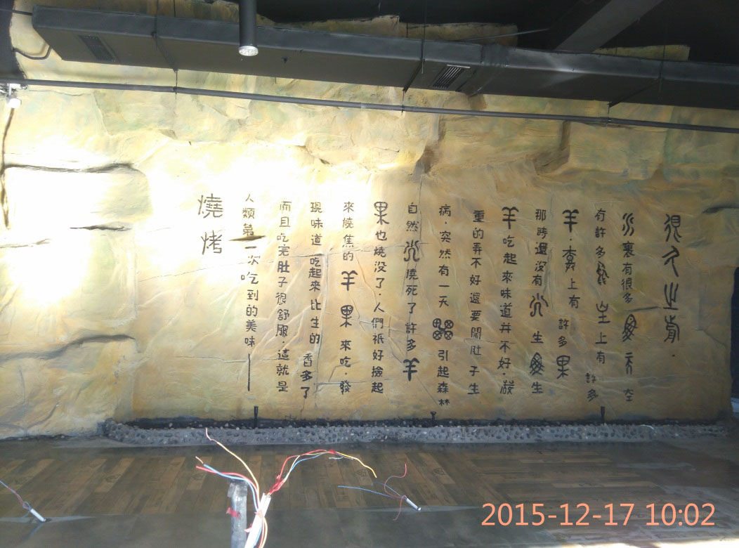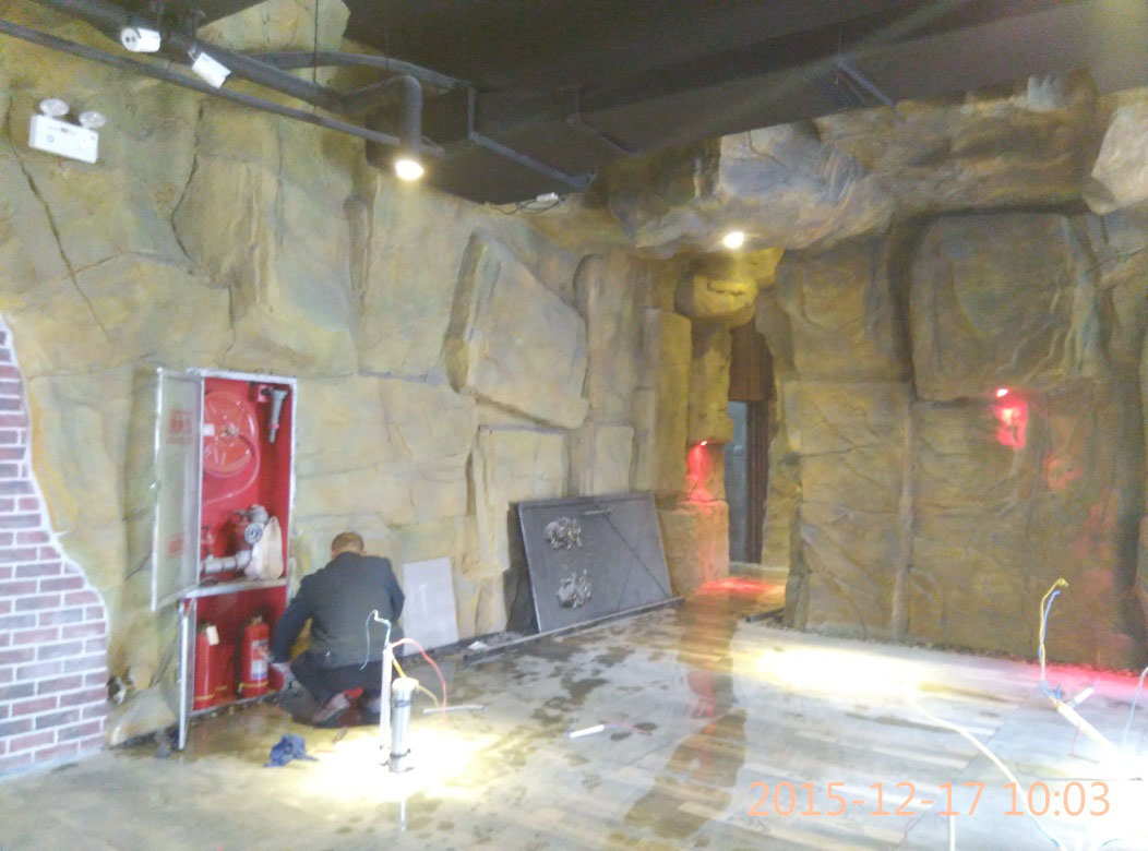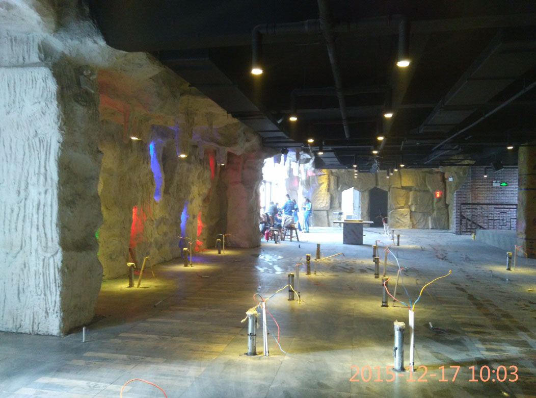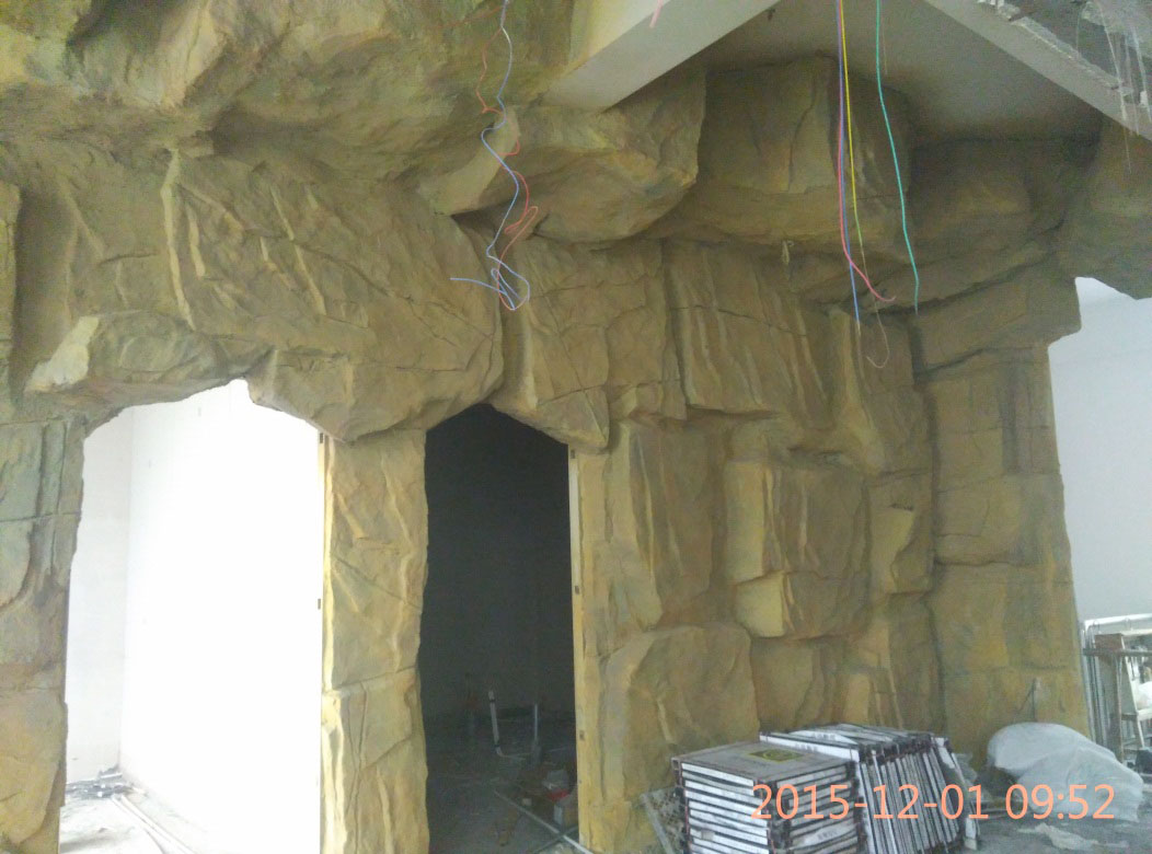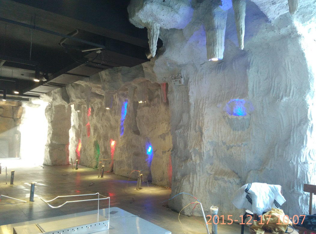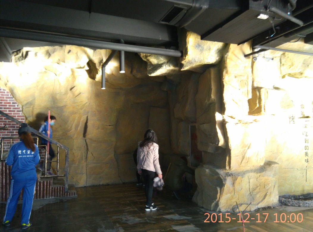 本項目從2015年10月28日開始施工,截止2015年12月6日順利竣工。地址位于濱州市黃河六路渤海十八路西200米路北。室內(nèi)假山裝飾部分,分為巖石假山、仿鐘乳石假山、仿溶洞效果三種風(fēng)格。現(xiàn)為濱州市唯一一家大型原生態(tài)風(fēng)格自助室內(nèi)燒烤城。