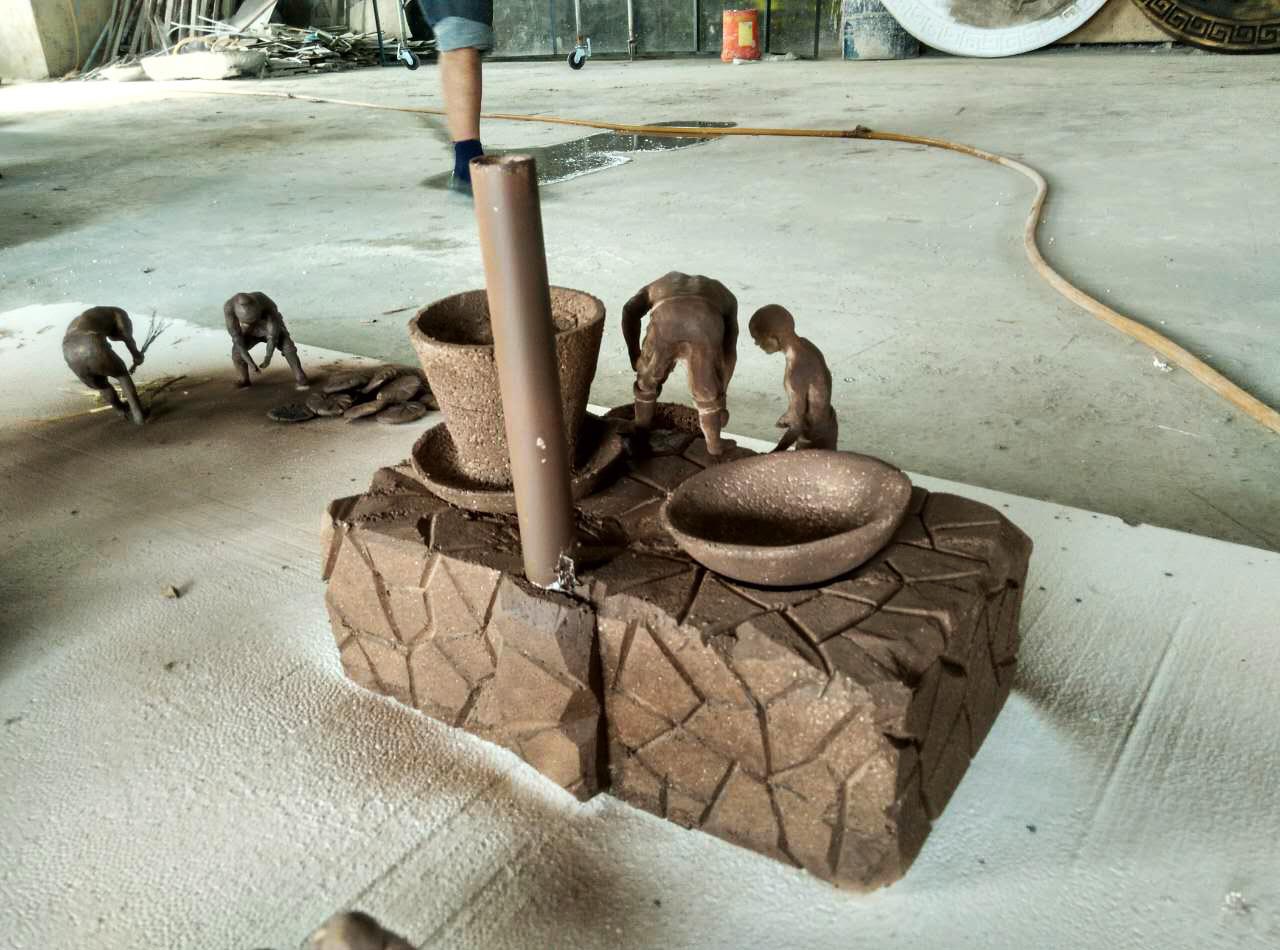 作品簡介:用群雕的形式再現(xiàn)來了中國傳統(tǒng)的釀酒工藝和壓榨花生油工藝。作品中人物材質(zhì)為泥塑,更能傳統(tǒng)、民俗、古樸的風格。