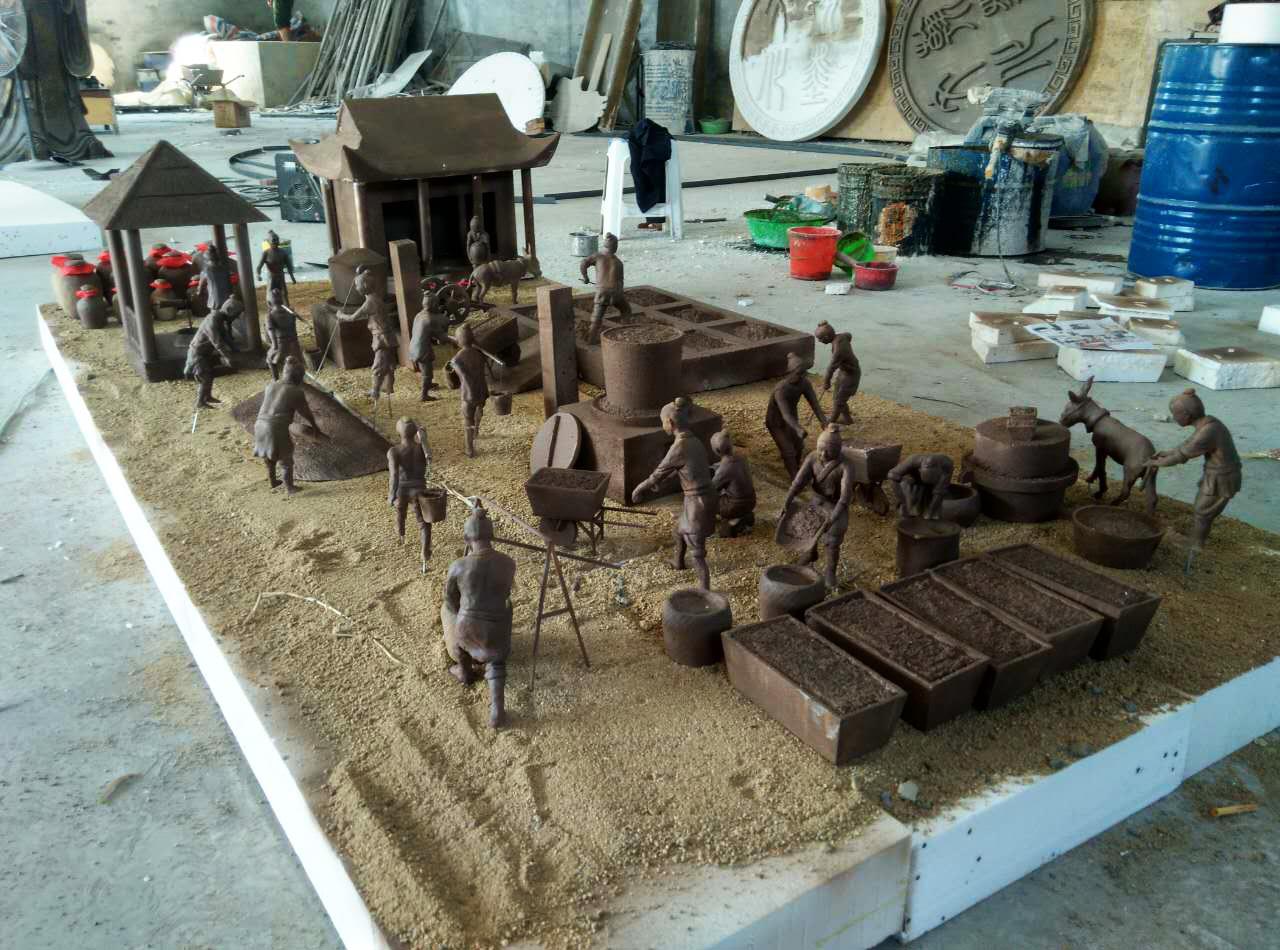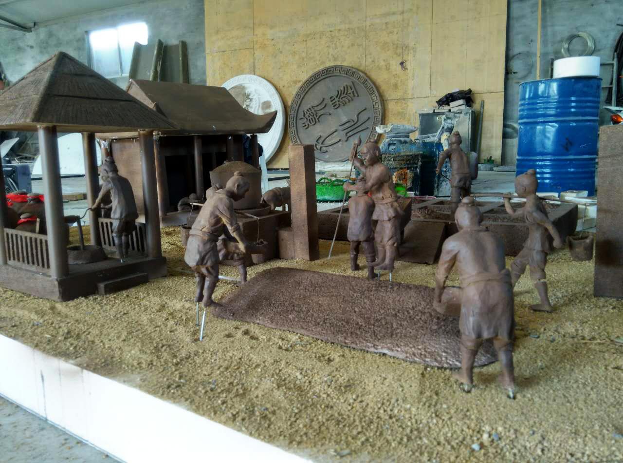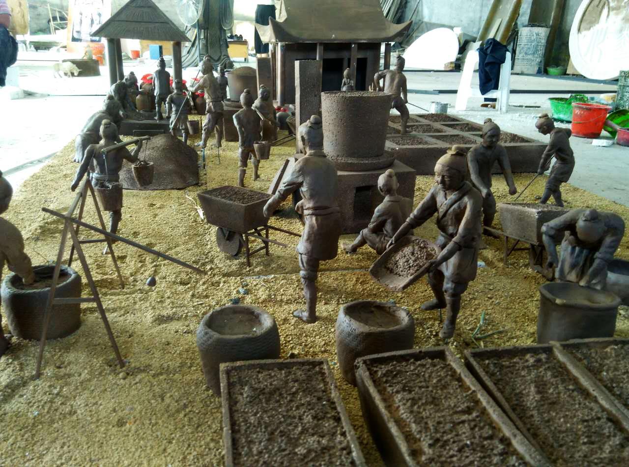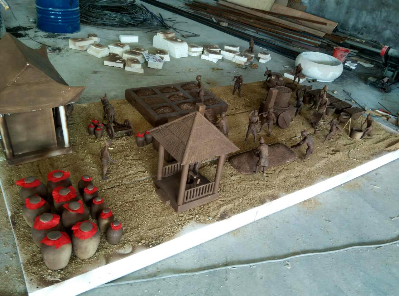 作品名稱:古法釀酒場景式群雕、古法榨油群雕。