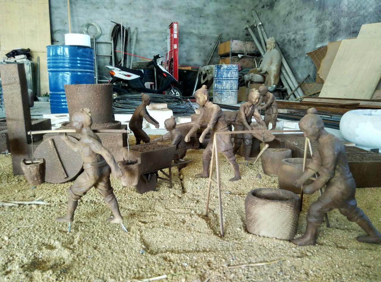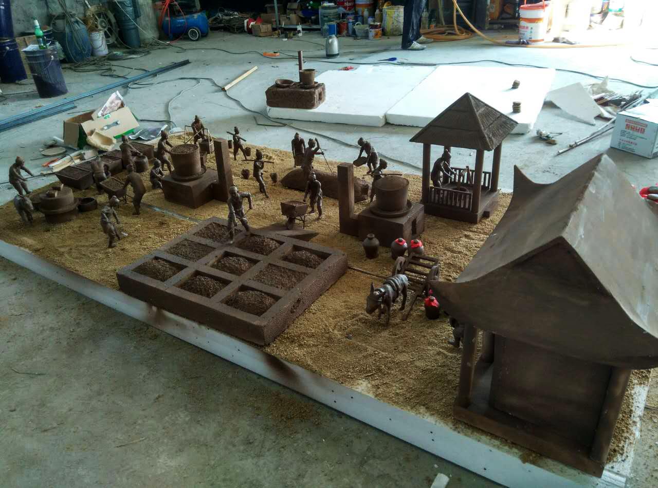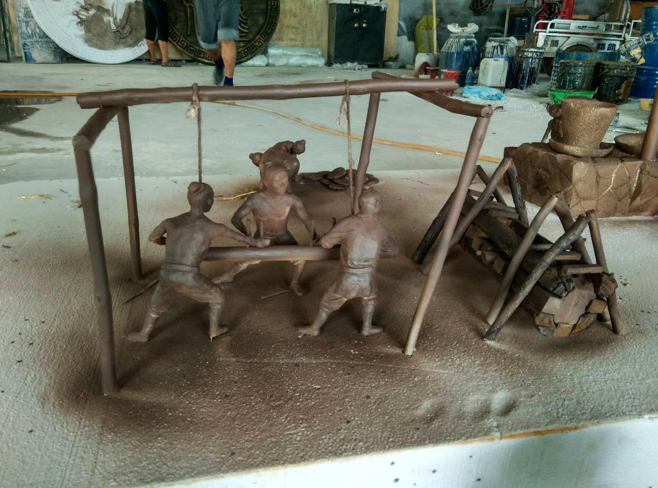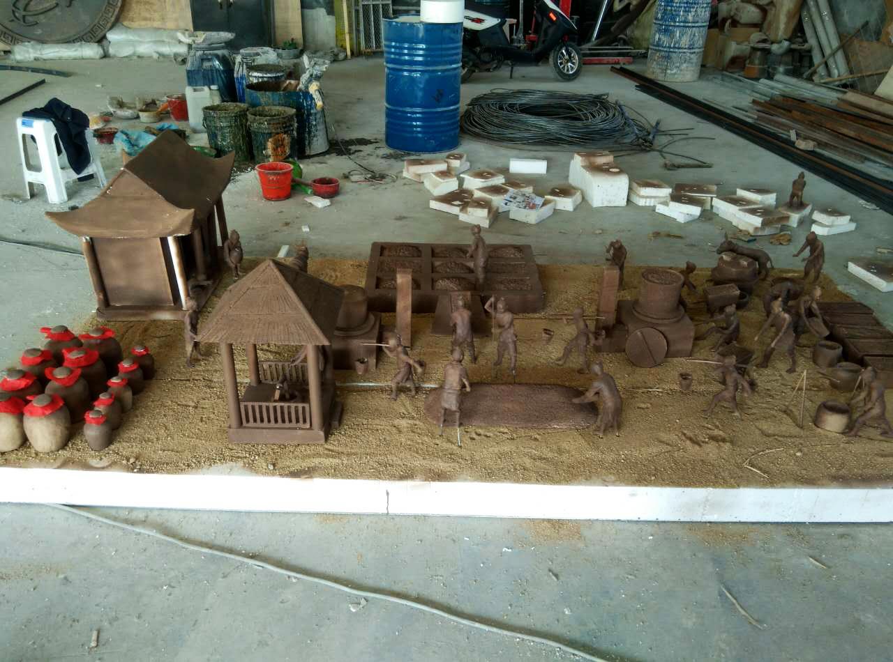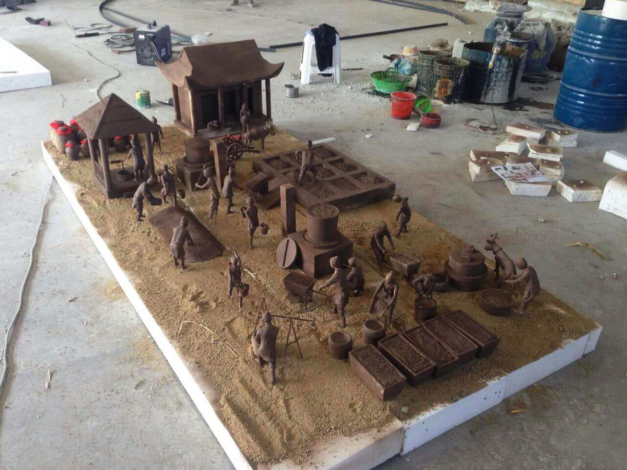 作品名稱:古法釀酒場景式群雕、古法榨油群雕。