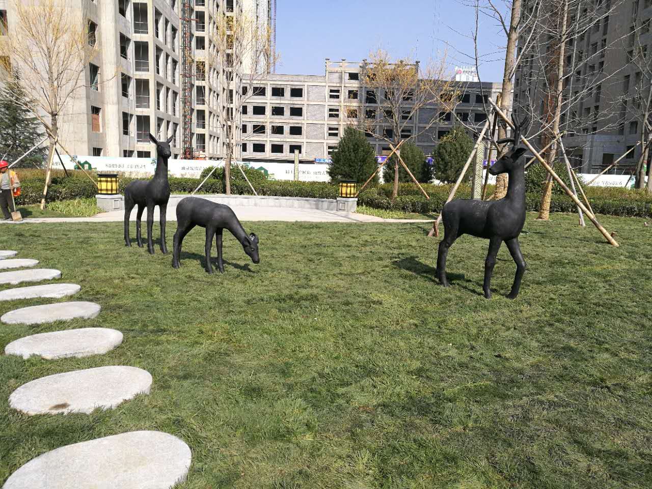 雕塑說明:玻璃鋼材質(zhì),共三個,屬于園林小品雕塑。