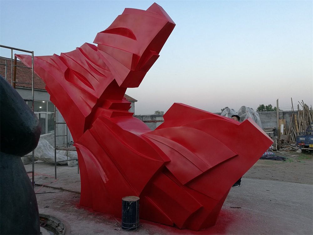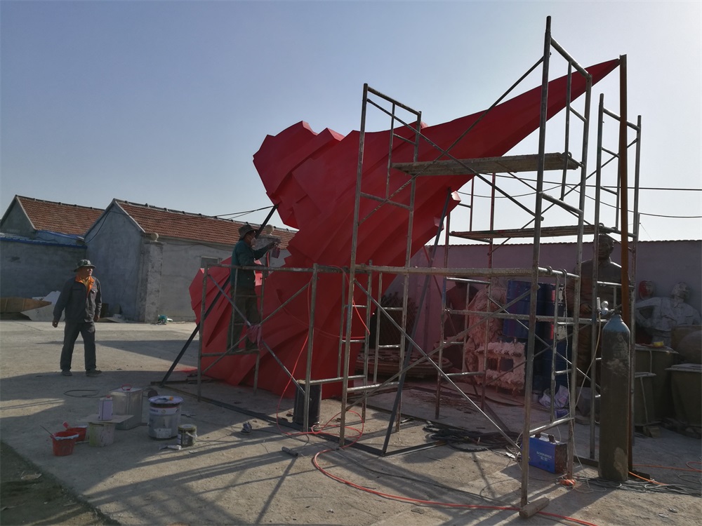 雕塑說明:紅旗雕塑采用不銹鋼鍛造工藝做型,高4米,長8米。人物群雕共10個人物,采用玻璃鋼工藝制作。
