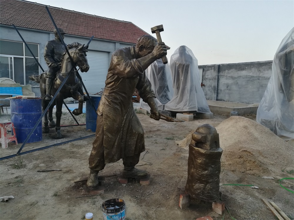 雕塑說明:騎馬將軍雕塑高2.6米,成品為玻璃鋼工藝制作。該組雕塑是雕塑公司拋開市場(chǎng)環(huán)境,真正藝術(shù)化創(chuàng)作的珍貴作品。打鐵匠雕塑,高1.9米,同樣采用玻璃鋼工藝制作。兩組雕塑的泥塑均有雕塑師張凱完成。未經(jīng)允許,嚴(yán)禁把本相冊(cè)圖片用于商業(yè)用途。