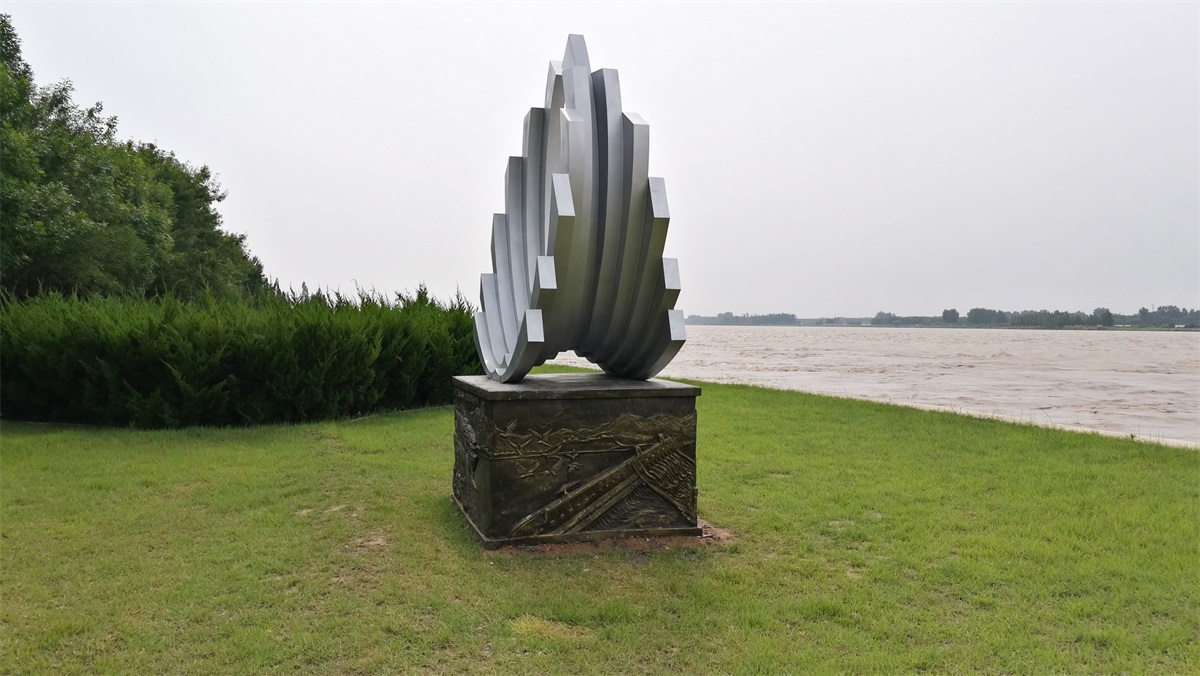 “黃河之翼”雕塑取形抽象翅膀、也像海浪,寓意黃河實(shí)業(yè)的騰飛和理想;像花朵,寓意著美好幸福;中心的花心,寓意著黃河不變的初心。底座浮雕體現(xiàn):共創(chuàng)五大體系,打造幸福河湖、堅(jiān)實(shí)的堤防、生態(tài)補(bǔ)水(水閘引水)、人水和諧(濕地飛鳥(niǎo))、勝利油田、滄海桑田(肥沃農(nóng)田)等。