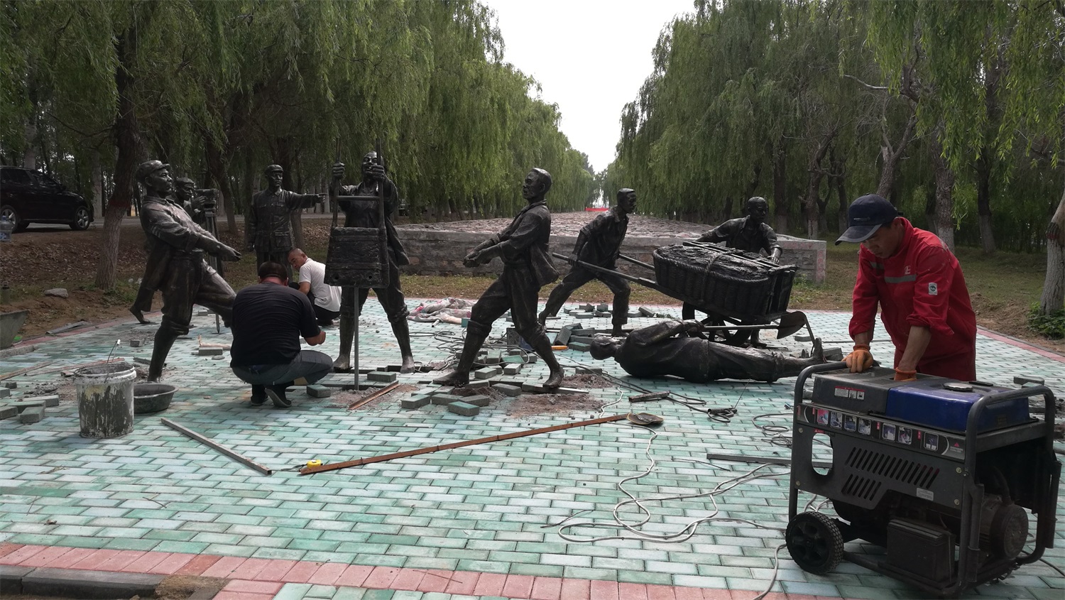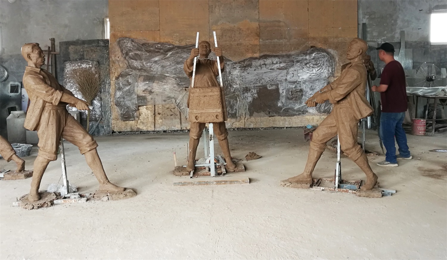 簡介:選取修建堤壩中人們熟悉的具有時代印記的幾個小場景,再現(xiàn)前輩治理黃河的場景,老輩人有共鳴感,對年輕人有實際的教育和激勵。展現(xiàn)黃河人奮斗歷史繼承黃河精神。泥塑于5月23日完成。