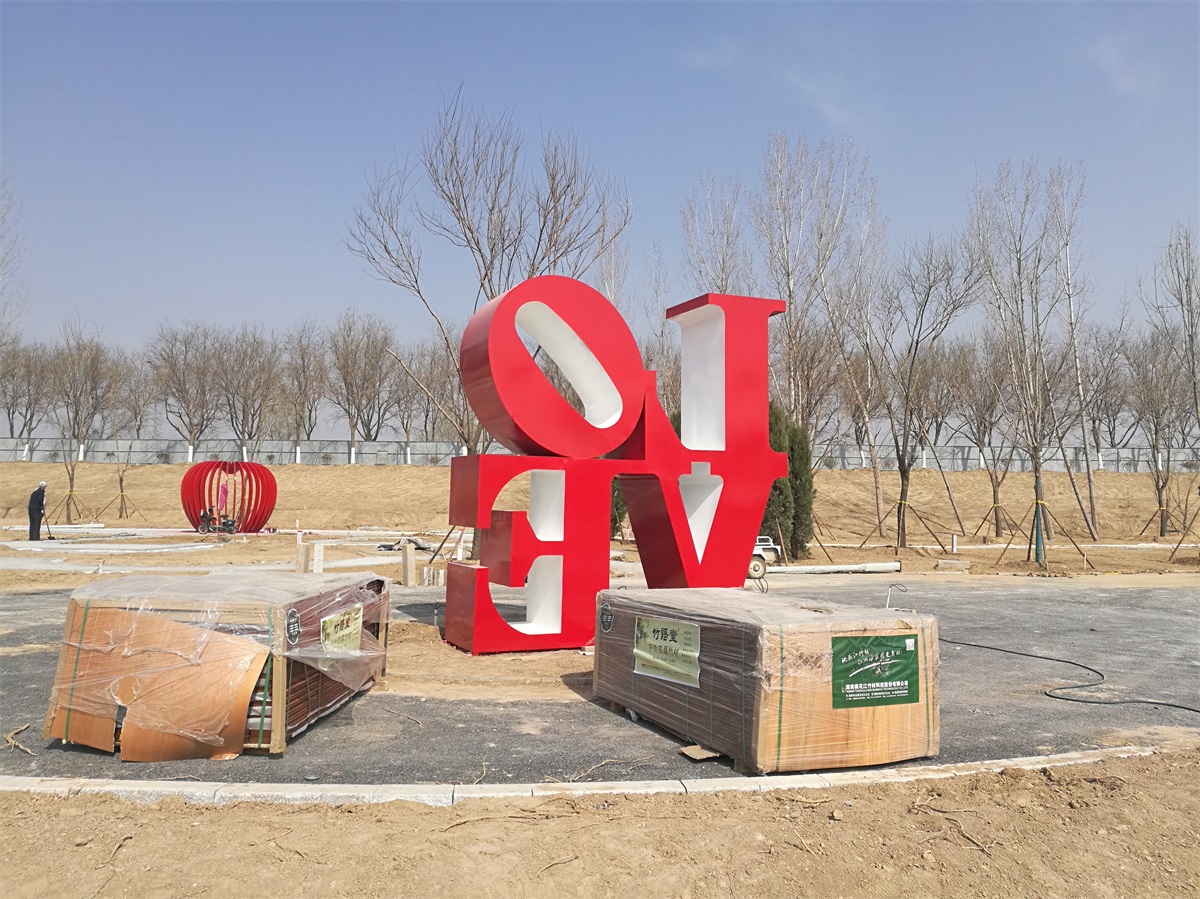 說(shuō)明:love雕塑高3米,鳥(niǎo)籠雕塑高3.3,金屬材質(zhì)。