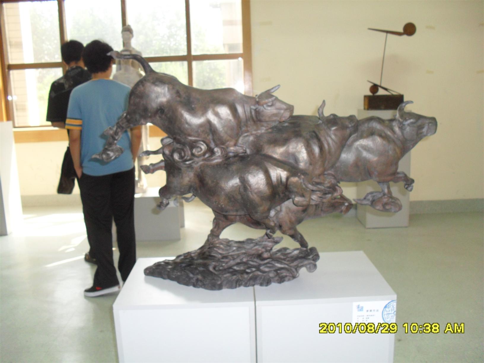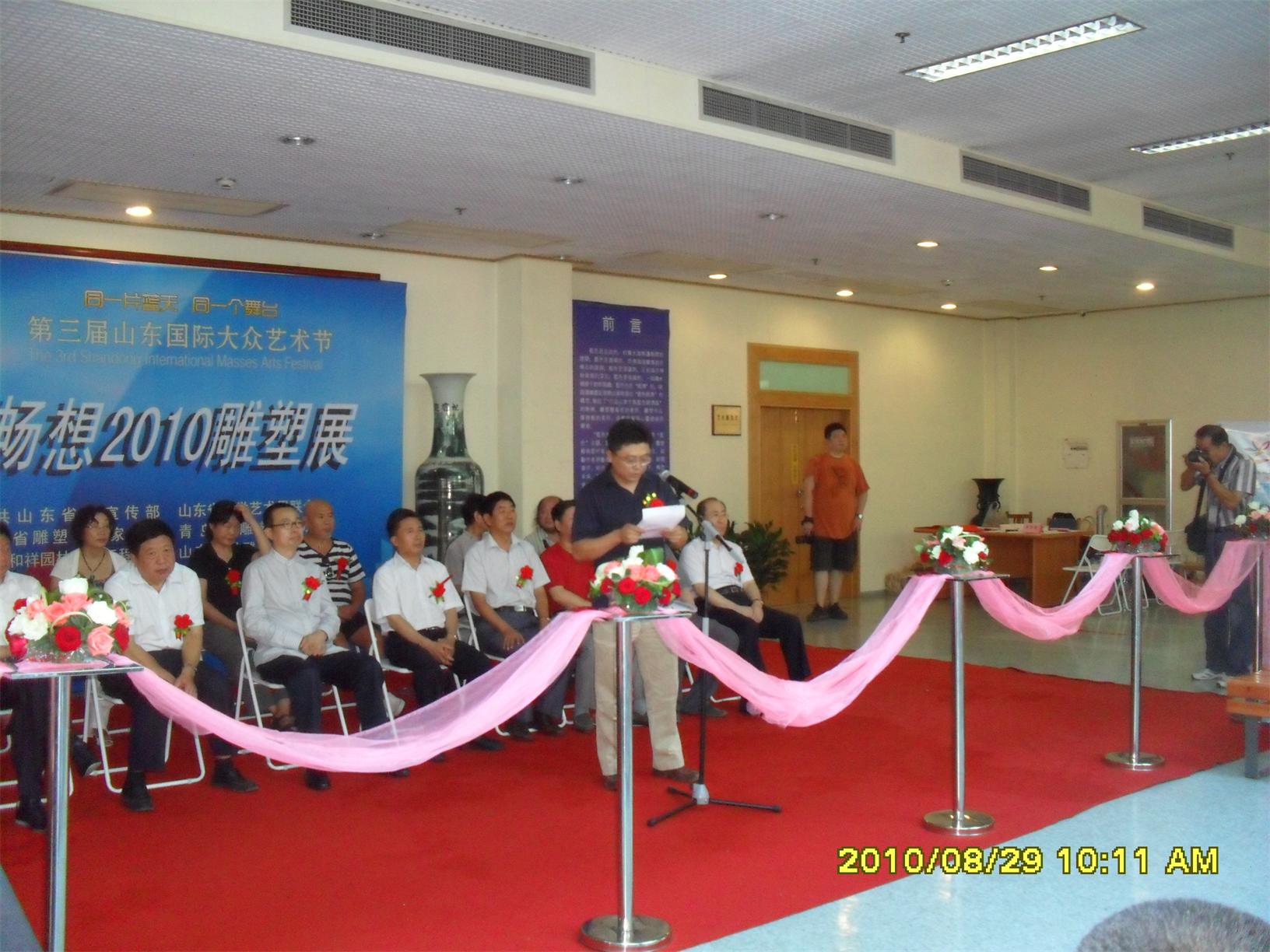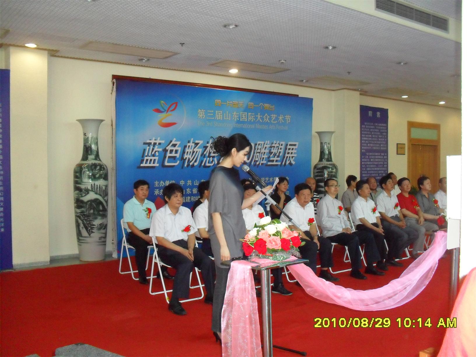 藍(lán)色暢想2010雕塑,2010年8月29日,由中共山東省委宣傳部、山東省文學(xué)藝術(shù)界聯(lián)合會主辦,山東省雕塑藝術(shù)家協(xié)會、青島雕塑家協(xié)會承辦的第三屆山東國際大眾藝術(shù)節(jié)--藍(lán)色暢想2010雕塑展在山東省圖書館隆重開幕。 "藍(lán)色暢想2010雕塑展"吸引了省內(nèi)外大批中青年雕塑家的參與,展覽共收到101位雕塑藝術(shù)家的126件入圍作品。其中省內(nèi)中青年雕塑藝術(shù)家占絕大多數(shù),圍繞"藍(lán)色"主題,堅(jiān)持創(chuàng)造、創(chuàng)新理念,創(chuàng)作了大批優(yōu)秀的雕塑藝術(shù)作品,語言生動,內(nèi)容多樣,借助不同材質(zhì)和多元化的藝術(shù)風(fēng)格,對藍(lán)色精神進(jìn)行了深入的闡釋。李友生的《海風(fēng)倩影》、王未的《藍(lán)色暢想》、譚信國的《蘋果系列》等作品,均對雕塑藝術(shù)內(nèi)涵進(jìn)行了深入的探索。